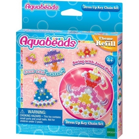 Maakje de prachtigste jurken met de Aquabeads Sleutelhangerset verkleden en neem ze als sleutelhanger met je mee. De set bevat 350 parels, 2 patroonvellen blaadjes, een kettinkje om een sleutelhanger te maken, 2 zuignapjes en een ophanghaakje.