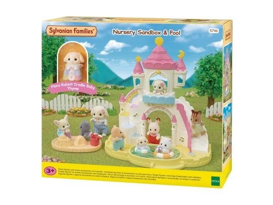 De gloednieuwe Sylvanian Families Baby zandbak en zwembad-set is perfect voor de kinderkamer. De set is inclusief baby bloemen hangoor konijn. Adviesleeftijd 3+