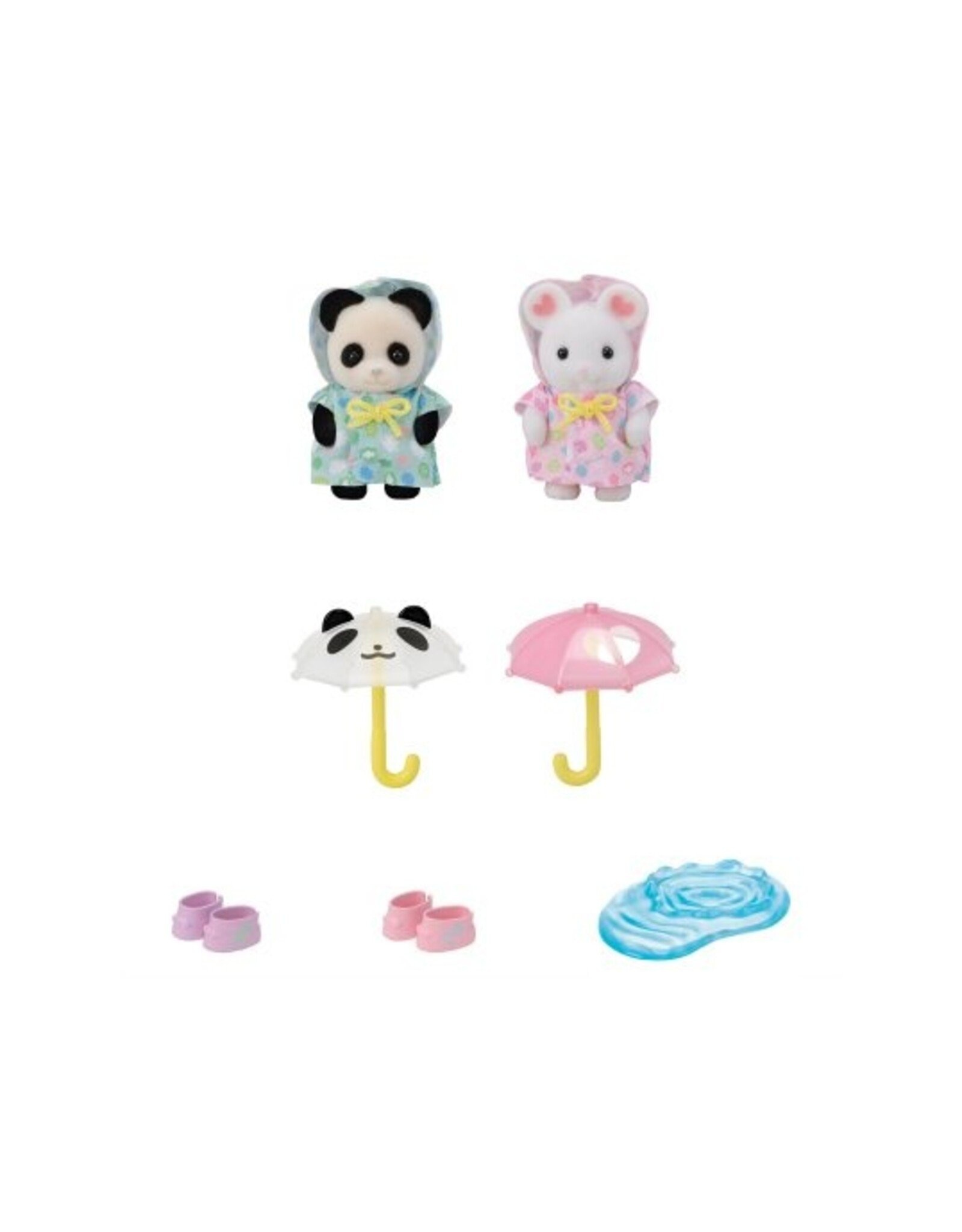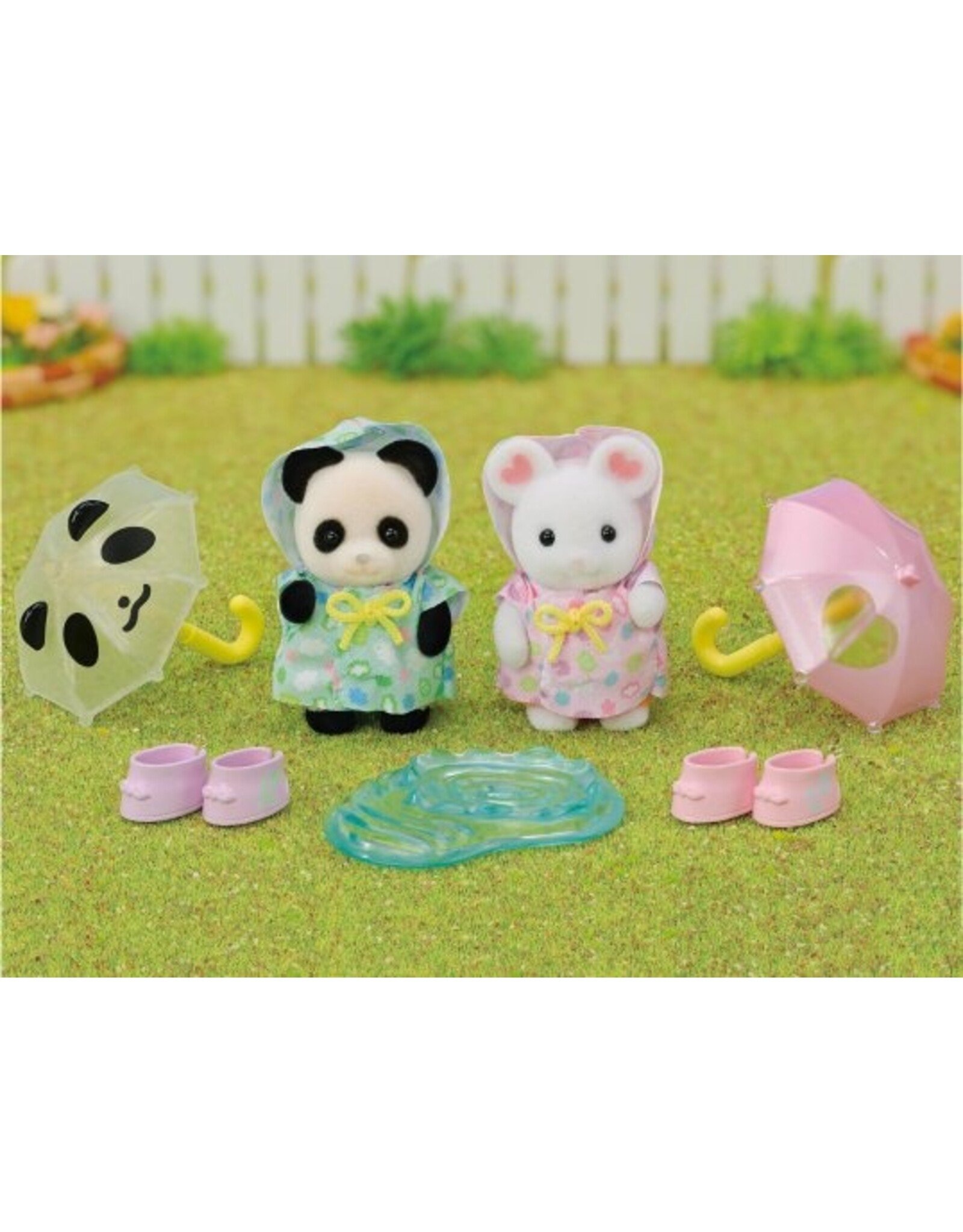 Deze Sylvanian Families set is de perfecte aanvulling op elke kinderspeelset! Deze set wordt geleverd met twee baby's, schattige kleine paraplu's, regenlaarzen en zelfs een plas, perfect voor spelen op een regenachtige dag. De paraplu's passen in de handjes van de baby's en de rubberlaarzen kunnen door elke Sylvanian-baby worden gedragen.