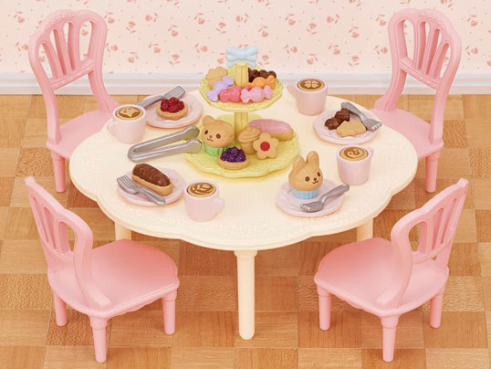 Jouw Sylvanian Families zullen in de rij staan om uitgenodigd te worden voor dit feest. De grote tafel en vier stoelen voor uw gasten maken dit de perfecte feestset voor elke speciale gelegenheid.