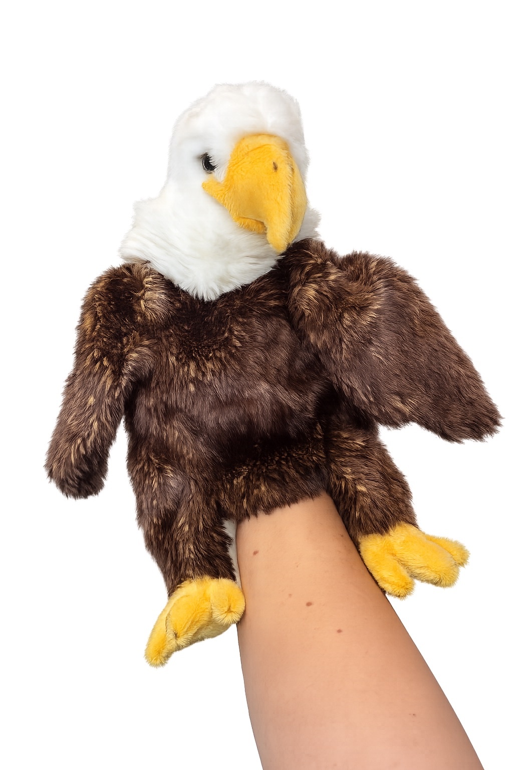 Maak je eigen spannende verhaal met deze zachte handpop Adelaar.