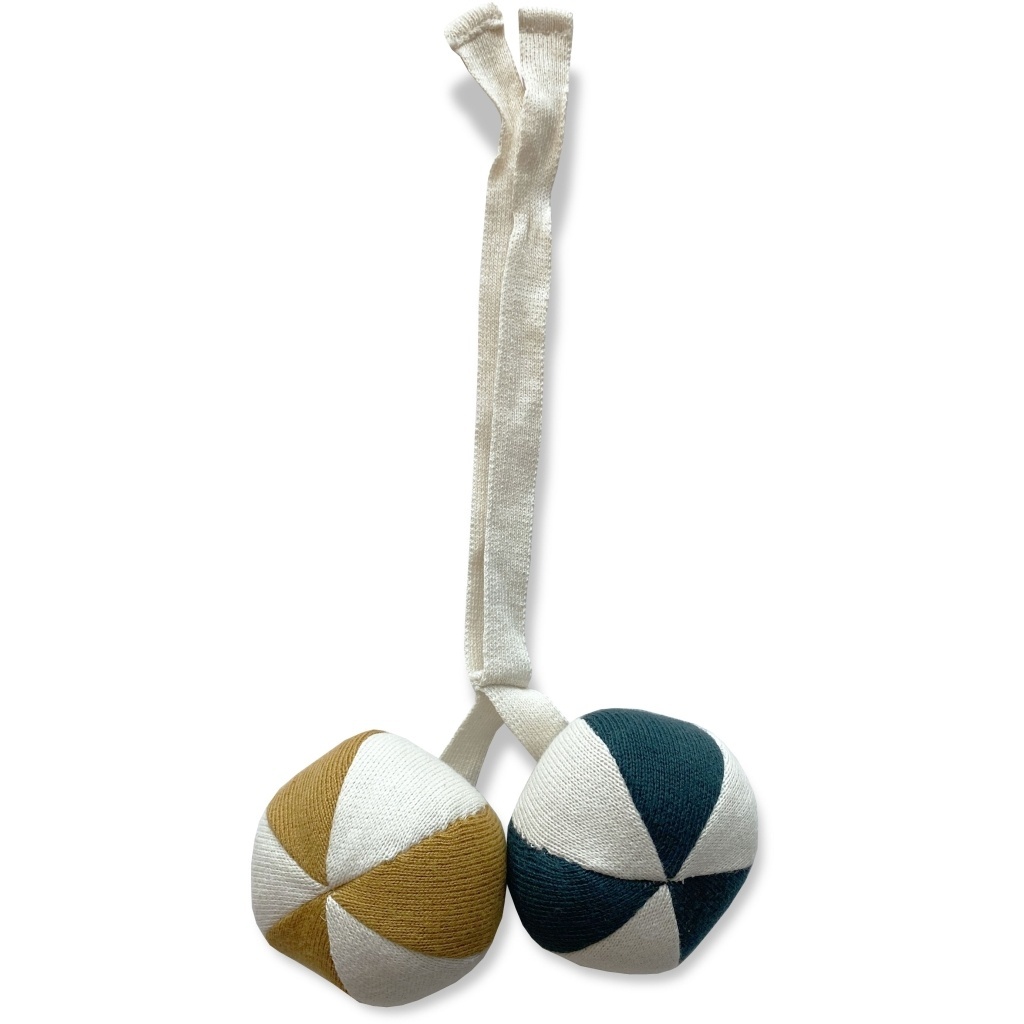 Leuk gebreid activiteitenspeeltje met twee ballen met belletje. Gebruik hem om op te hangen of in je activiteitencentrum.