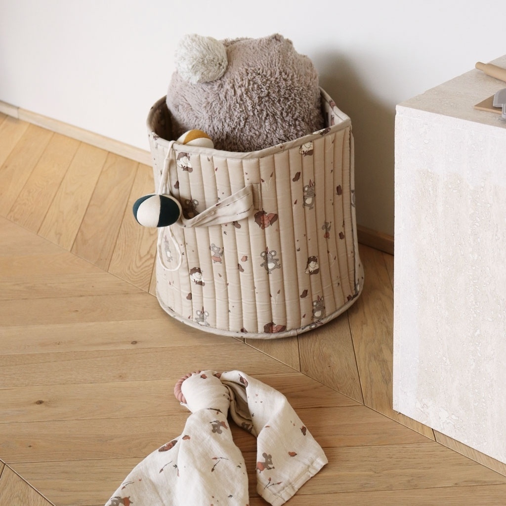 Leuk gebreid activiteitenspeeltje met twee ballen met belletje. Gebruik hem om op te hangen of in het activiteitencentrum.