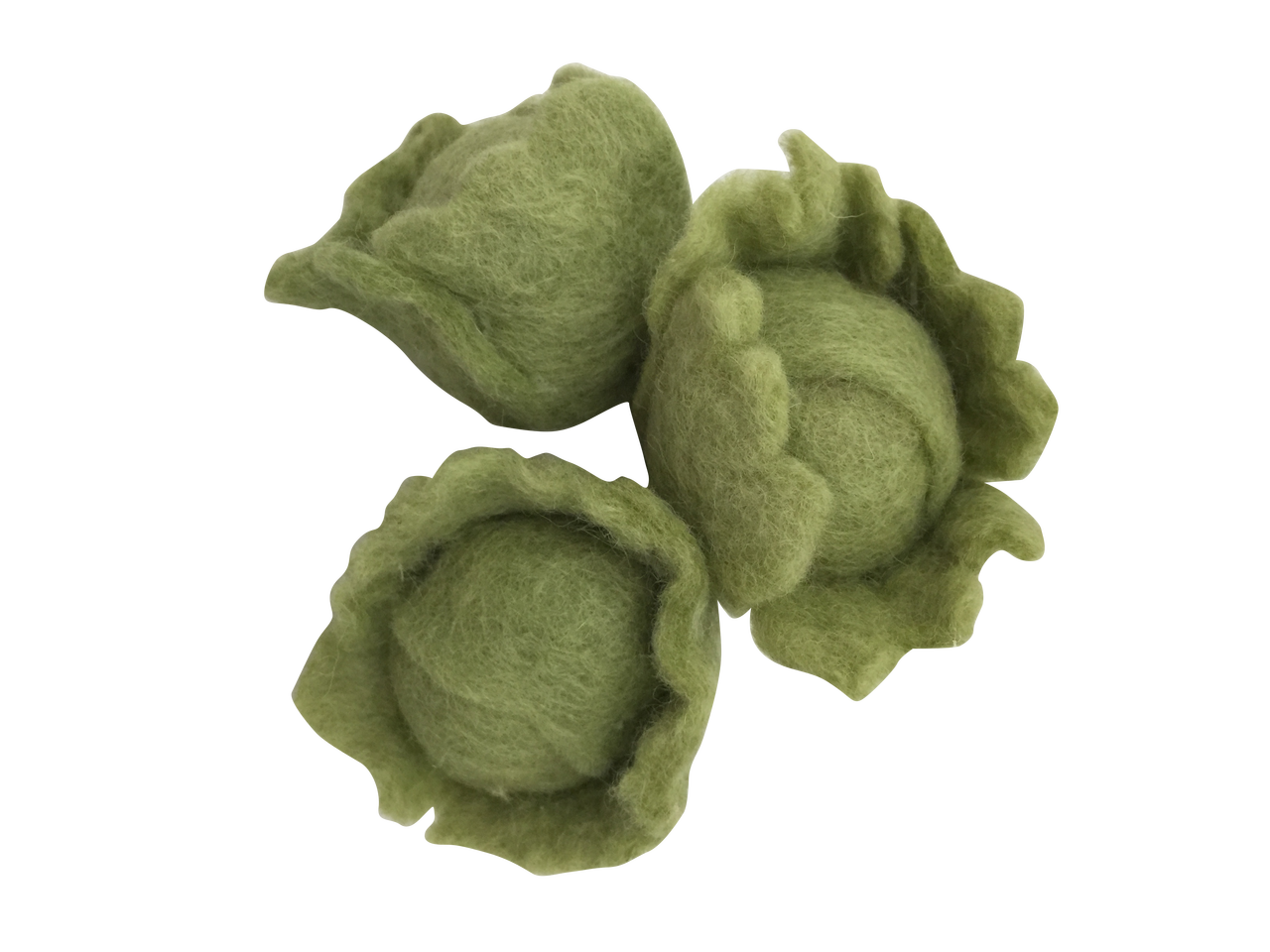 3 mini Groene Kooltjes gemaakt van wolvilt. Lees meer
