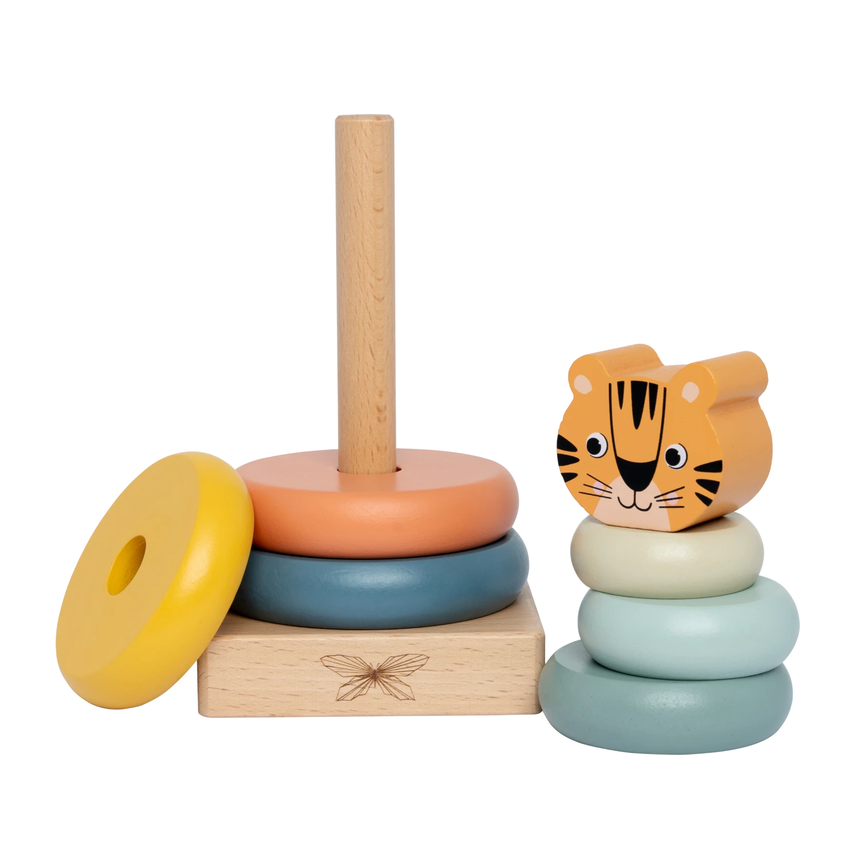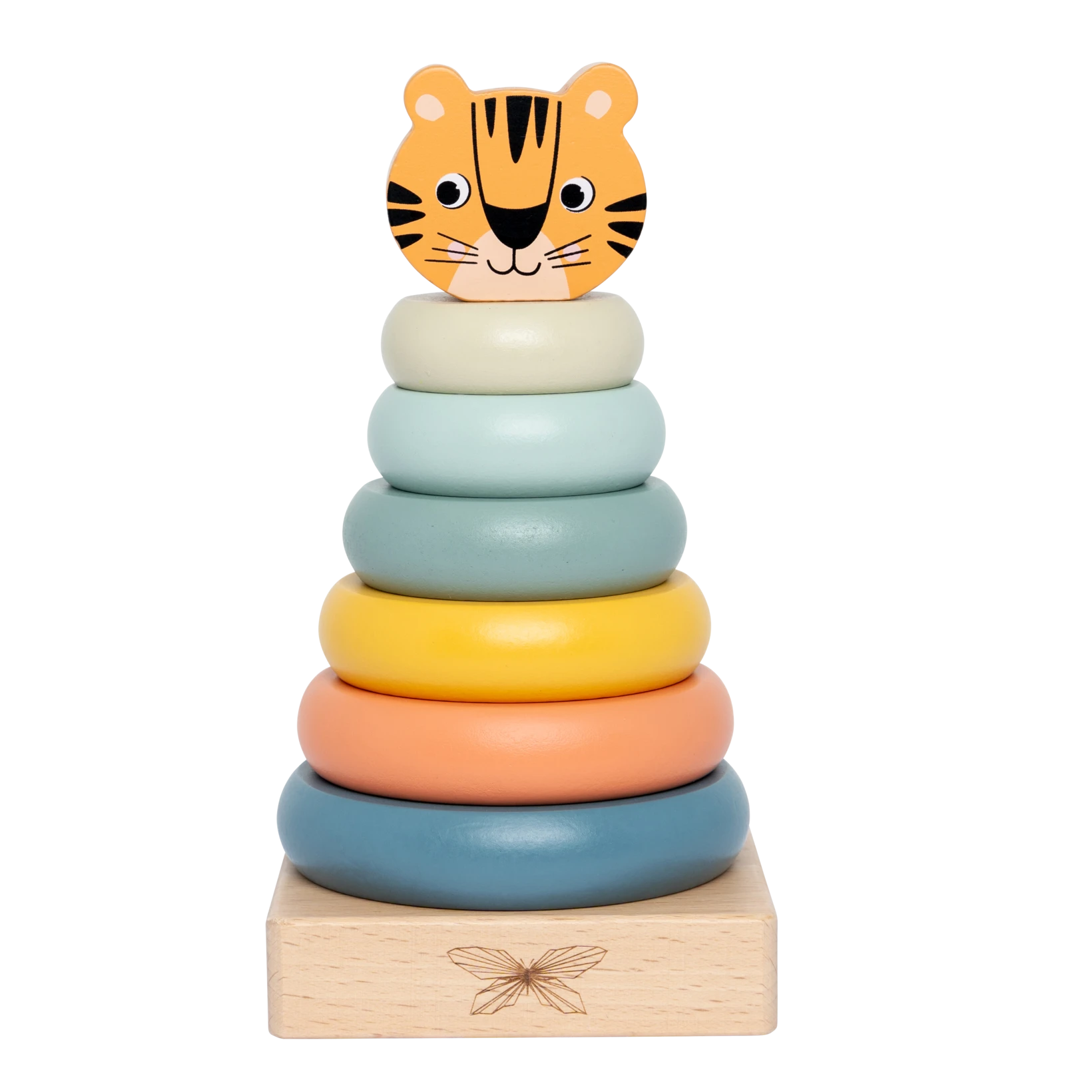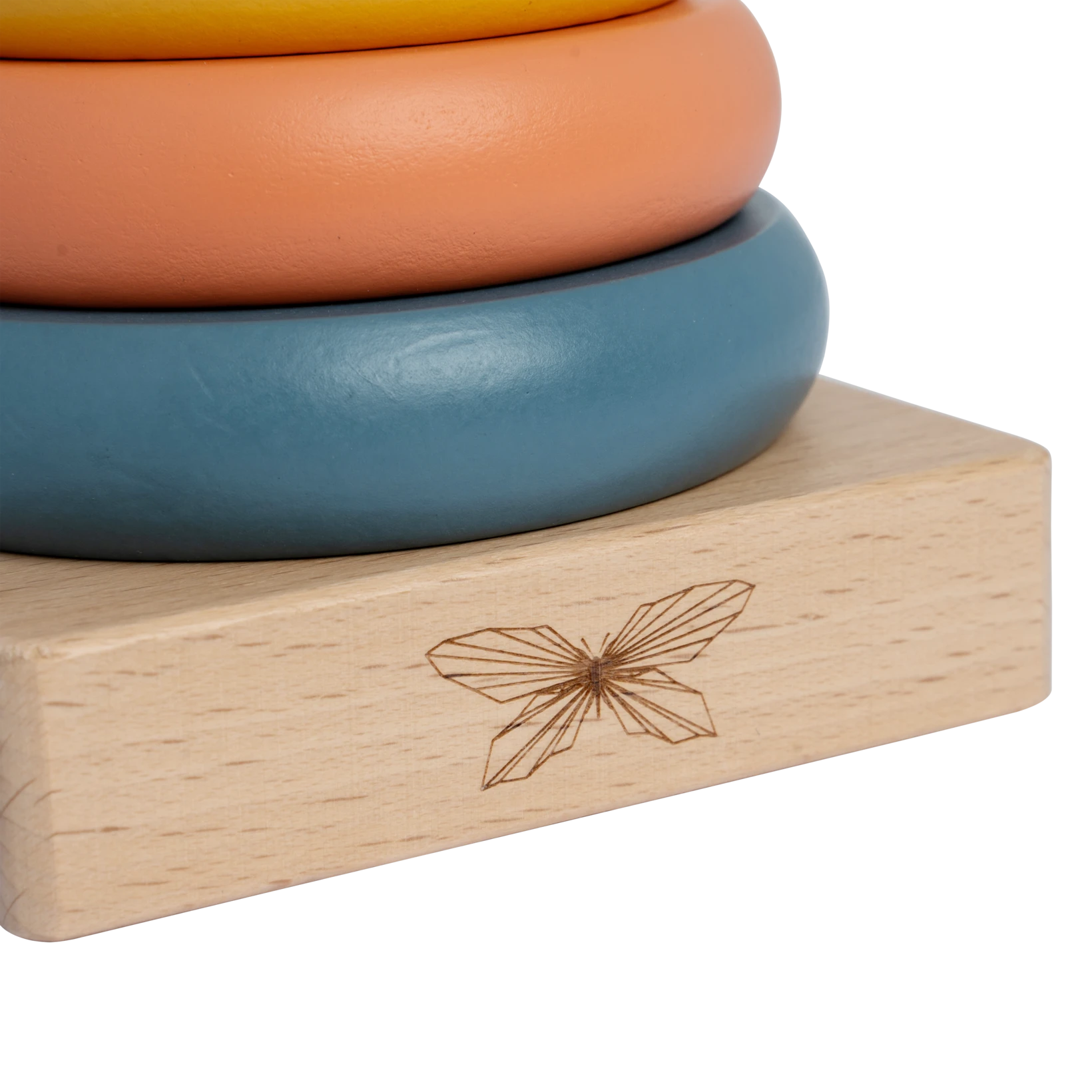 De stapeltoren bestaat uit zes houten ringen in verschillende maten en zes verschillende Scandinavische kleuren. Deze ringen nodigen kinderen uit om grootte, vorm en kleur te ontdekken terwijl ze de toren in de perfecte volgorde bouwen en stapelen. Dit spel is niet alleen leuk, maar stimuleert ook de ontwikkeling van hand-oogcoördinatie, concentratie, vorm- en kleurherkenning, logisch denken en probleemoplossing.