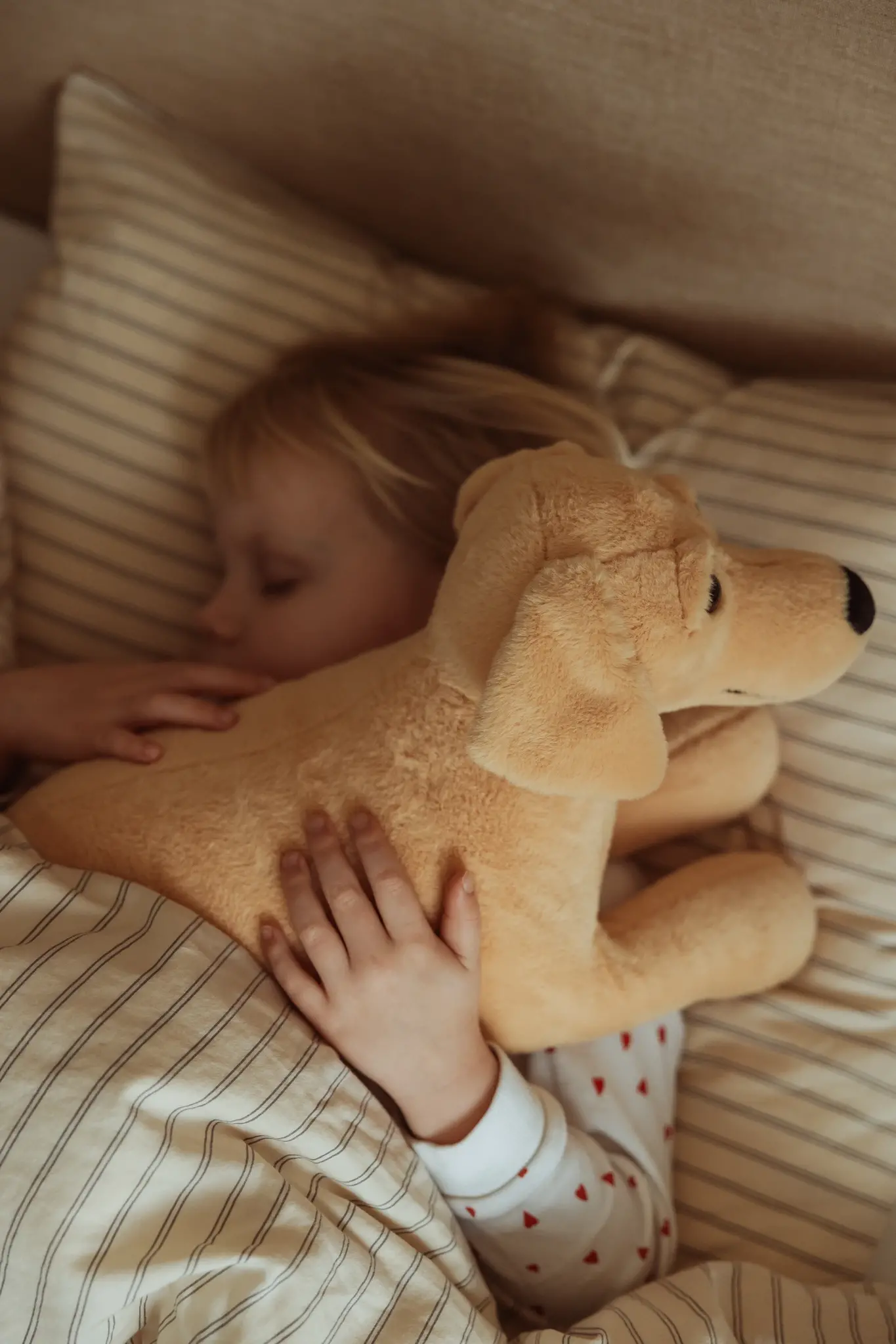Met een zachte, zorgzame uitdrukking in zijn ogen is deze zachte en verzwaarde pluchen hond de perfecte metgezel voor elk kind dat behoefte heeft aan troost, rust of een knuffelvriendje om mee te knuffelen voor het slapengaan. Ontworpen naar het voorbeeld van Noordse rassen, creëert de zandkleurige vacht, gecombineerd met zijn zwarte ogen en neus, een uitnodigende en authentieke uitstraling die zowel toegankelijk als hartverwarmend aanvoelt.