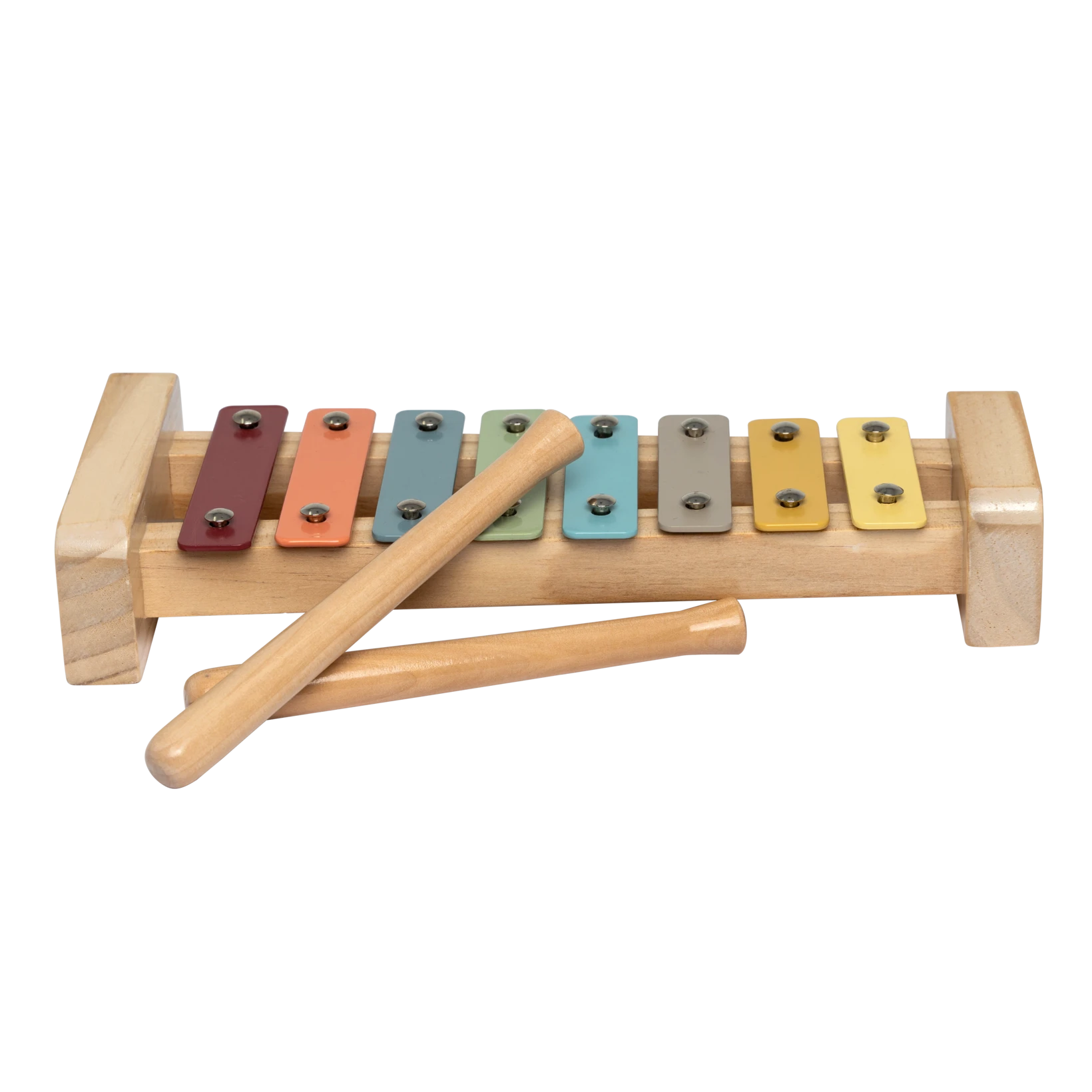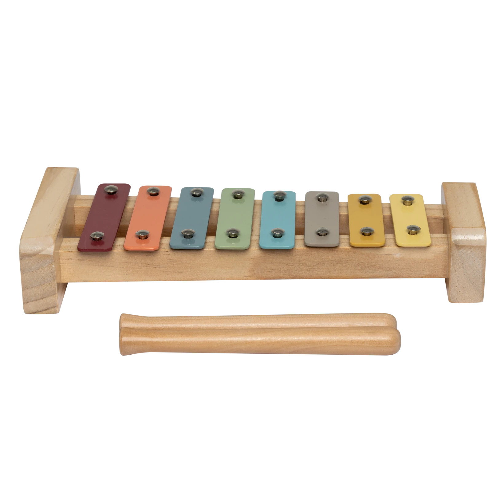 De xylofoon nodigt uit om muziek op het gehoor te verkennen en met de meegeleverde hamers kan het kind de tonen gaan verkennen en zijn eigen melodieën creëren.